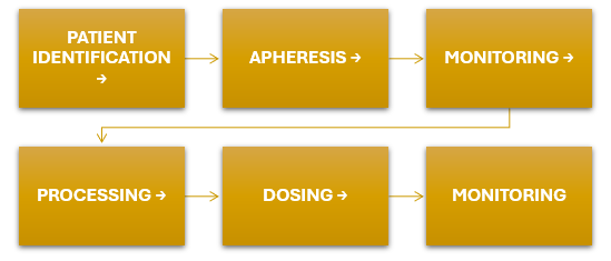 Each site could enroll only one patient at a time, and treatment proceeded through tightly timed apheresis → manufacturing → dosing sequences that made missed windows costly.